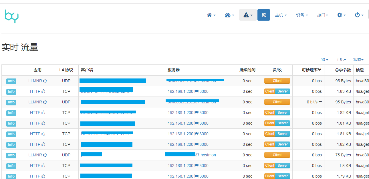 顯示實時(shí)網絡流量和(hé)活動主機(jī)。